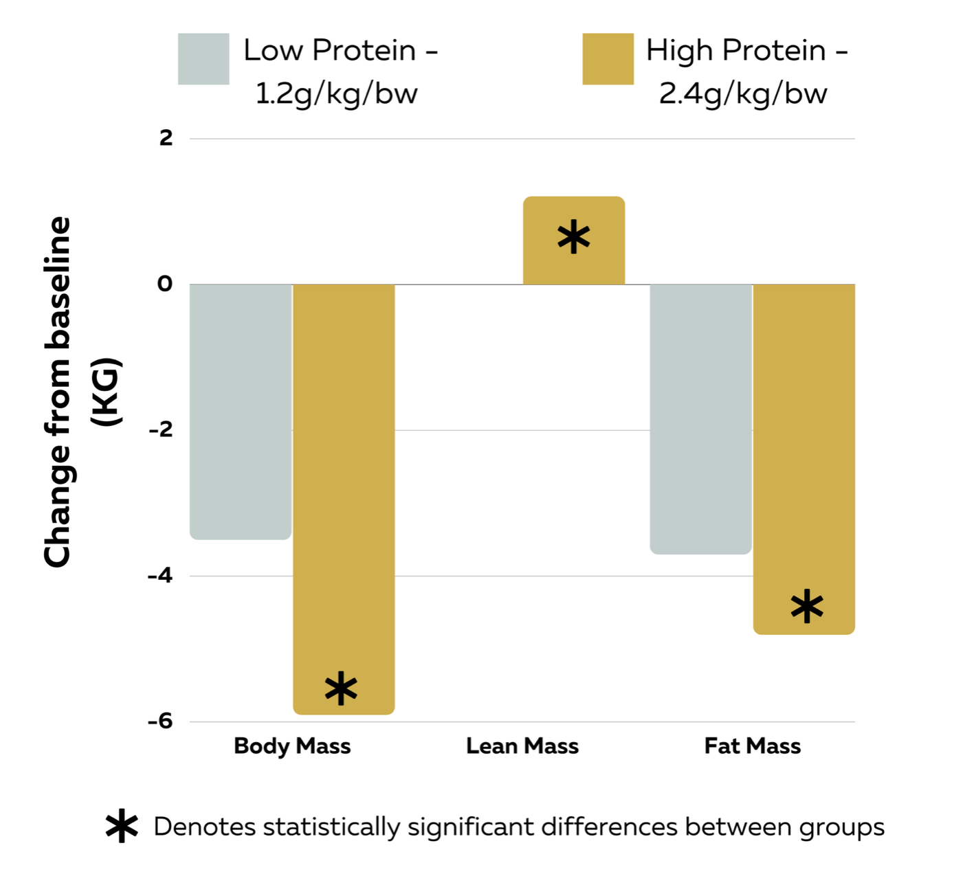 The high protein group lost more body fat than the normal group (in energy matched deficits), but also gained 2.64 of lean body mass, while the normal group gained 0.